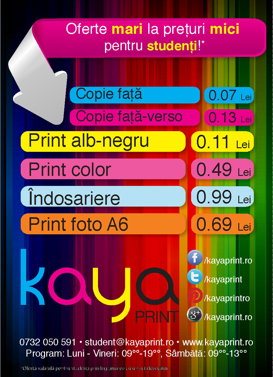 Full size 897 × 1240 pixels Preturi print KayaPrint Shop Politehnica!